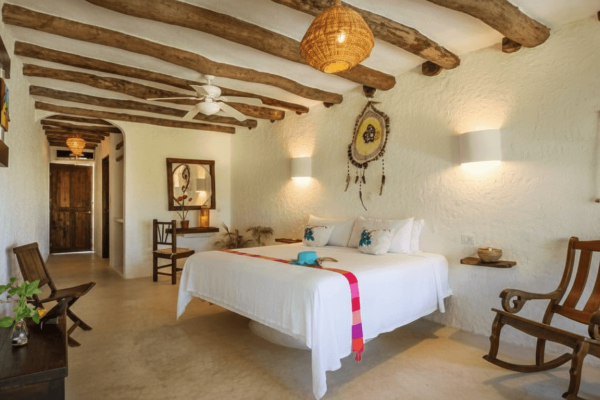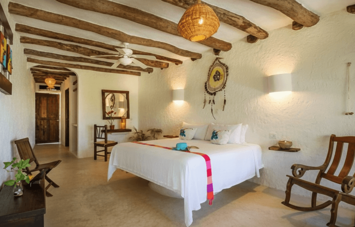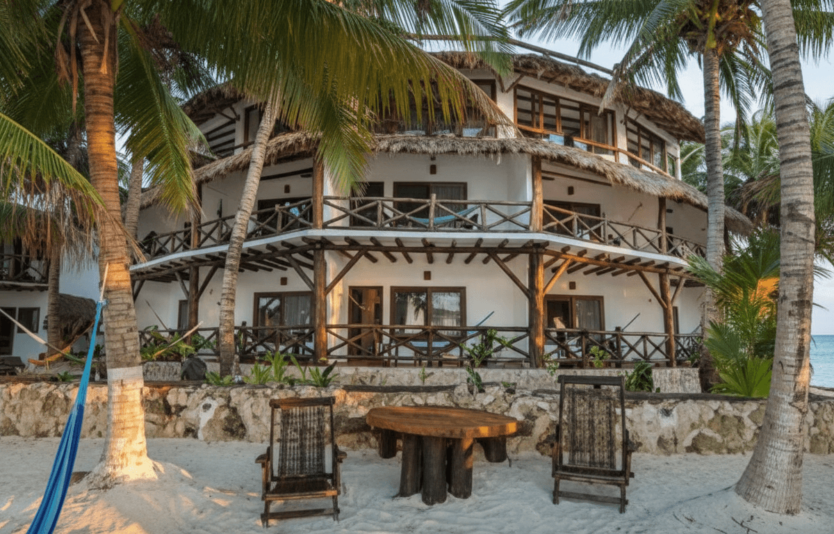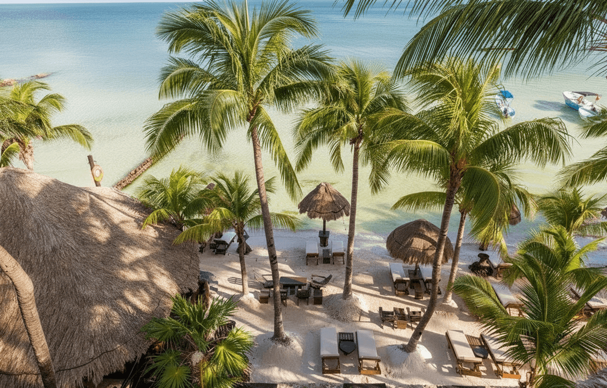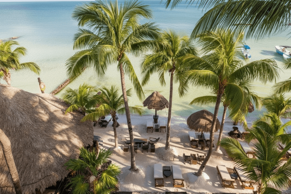 Hotel con encanto y estilo caribeño con palapas, ideal para disfrutar la playa desde el primer momento.
