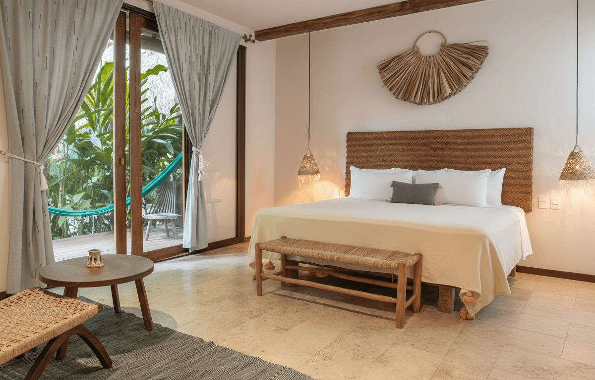 Un refugio de paz diseñado bajo una estética japonesa-wabi-sabi que invita a la introspección y al descanso profundo.