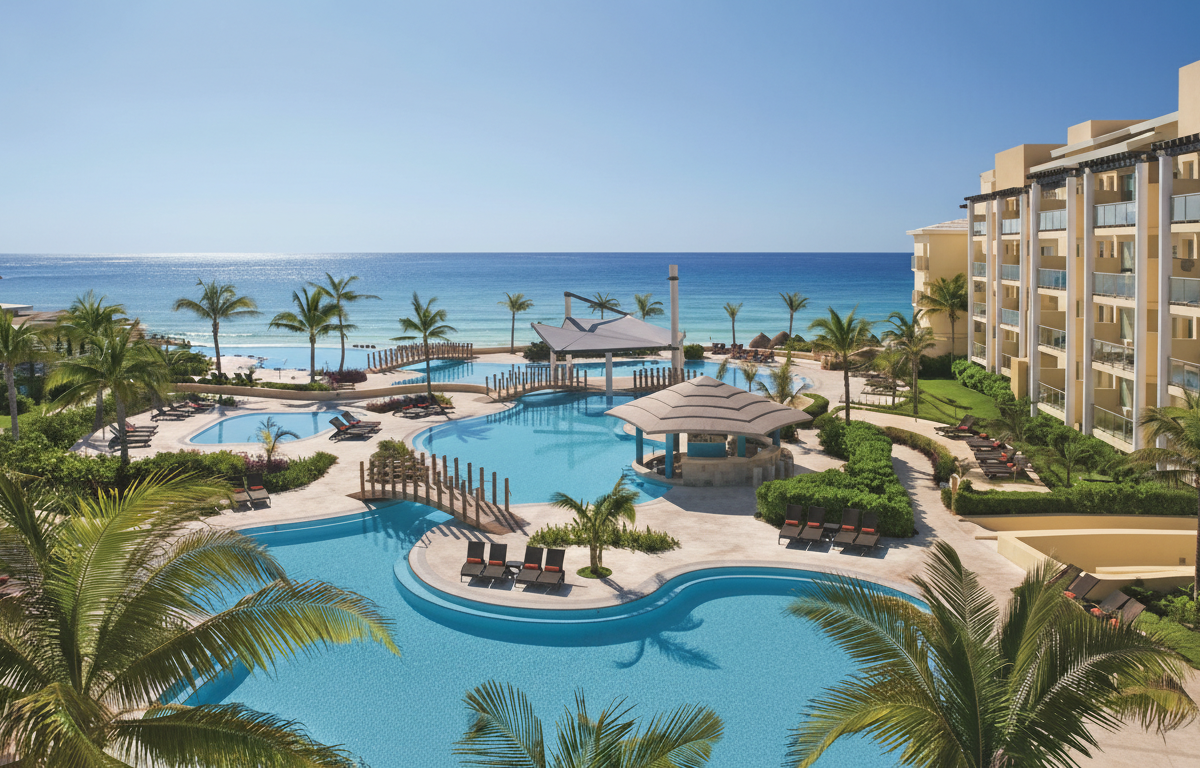 Dreams Jade Resort & Spa ofrece la experiencia Unlimited-Luxury® en Costa Mujeres con un ambiente diseñado tanto para familias como para parejas que buscan relajación activa. Su oferta incluye gastronomía internacional sin reservas, actividades acuáticas, entretenimiento diurno y nocturno, spa, clubs infantiles y espacios tranquilos frente al mar. Ideal para quienes desean unas vacaciones completas en un entorno elegante, con atención cuidada y servicios pensados para todas las edades.