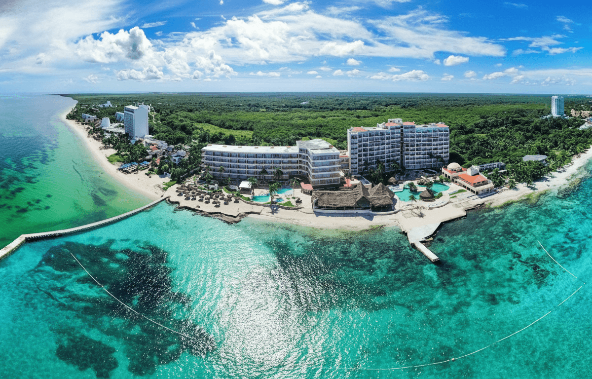 Amplio, relajado y con una de las playas más extensas del norte de la isla. El Cozumeleño es perfecto para familias y grupos que desean comodidad, ambiente tropical y múltiples piscinas para disfrutar todo el día. Su ubicación permite combinar descanso frente al mar con fácil acceso al centro de Cozumel.