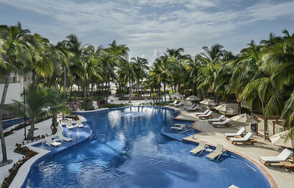 Este hotel de 5 estrellas es mundialmente reconocido en 2026 por sus Palafitos, bungalows situados directamente sobre el mar que ofrecen suelos de cristal y piscinas privadas. Ubicado en la privilegiada Playa Maroma, el hotel se aleja del concepto de resort masivo para ofrecer un servicio de guante blanco y una gastronomía de autor donde no existen las pulseras ni los buffets tradicionales. El concepto Gourmet Inclusive® asegura que cada platillo y bebida sea de nivel premium, con ingredientes frescos y presentaciones de alta cocina. Su atmósfera es íntima y sofisticada, diseñada específicamente para parejas en luna de miel o aniversarios que buscan privacidad total. El diseño del hotel integra la elegancia caribeña con toques modernos, permitiendo una conexión inigualable con el entorno marino. Es la joya de la corona para el viajero que busca exclusividad absoluta y una de las mejores experiencias de playa en todo el Caribe.
