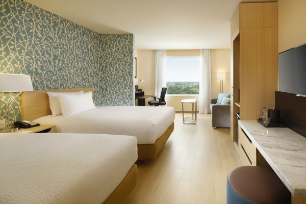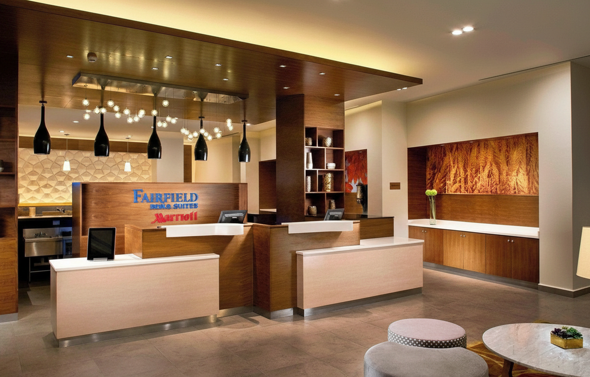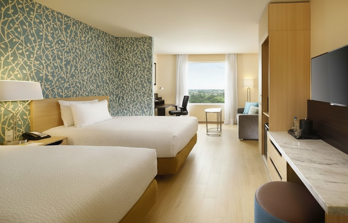 Fairfield Inn & Suites ofrece habitaciones cómodas y modernas con desayuno incluido, ideal para viajeros corporativos y familias que buscan confort y ubicación estratégica. Buena opción intermedia entre funcional y premium.