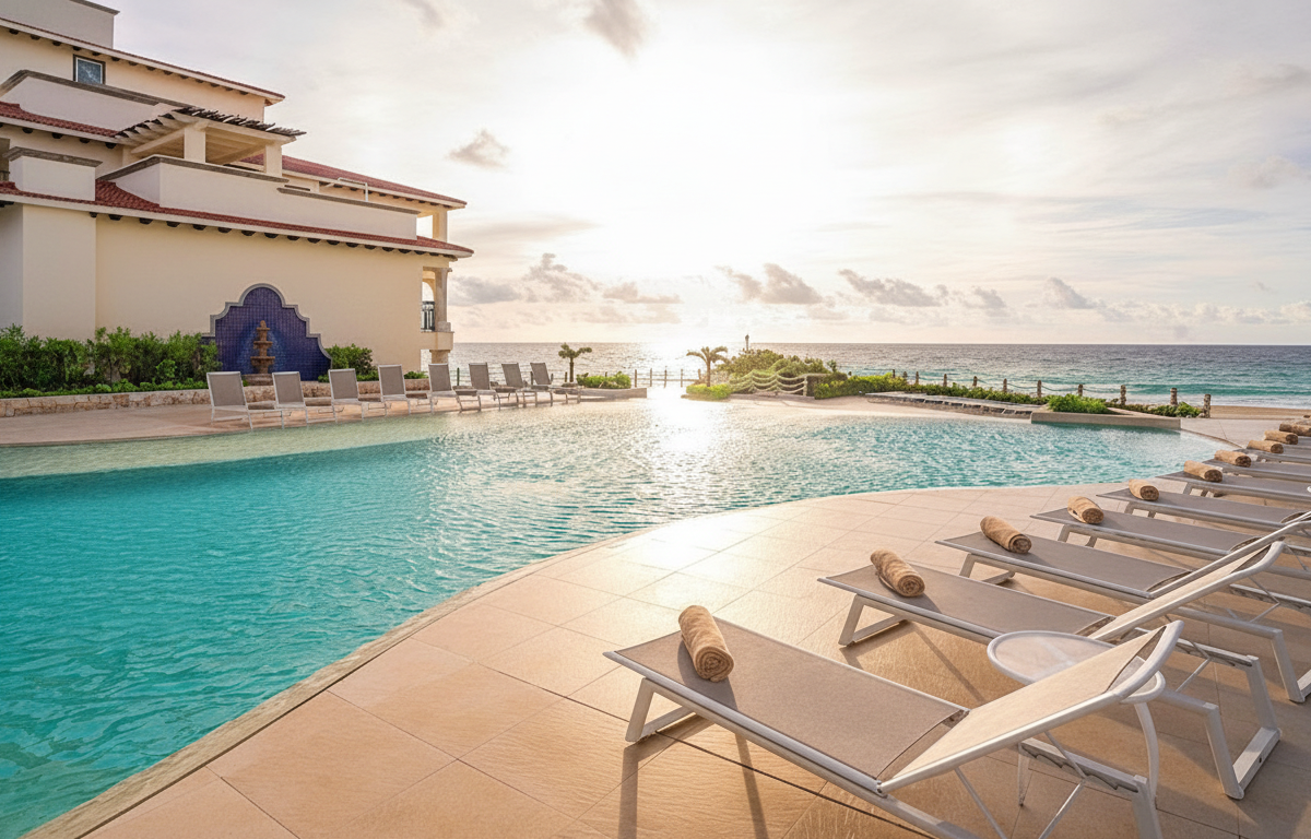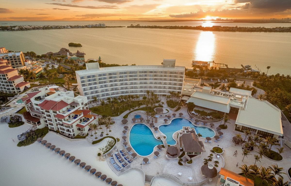 Grand Park Royal Cancún es un resort todo incluido frente al mar ideal para familias y parejas que buscan disfrutar de Cancún con comodidad y servicio confiable. Su ambiente tranquilo invita al descanso junto al Caribe, con actividades diarias para todas las edades y espacios pensados para relajación y convivencia familiar. Ofrece una gastronomía variada en sus restaurantes, opciones de entretenimiento y espacios amplios frente a la playa que facilitan un equilibrio perfecto entre diversión y descanso durante toda la estancia.