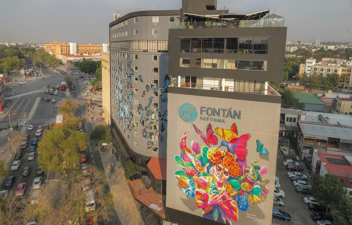 Estilo contemporáneo y vibrante frente a la Alameda Central.