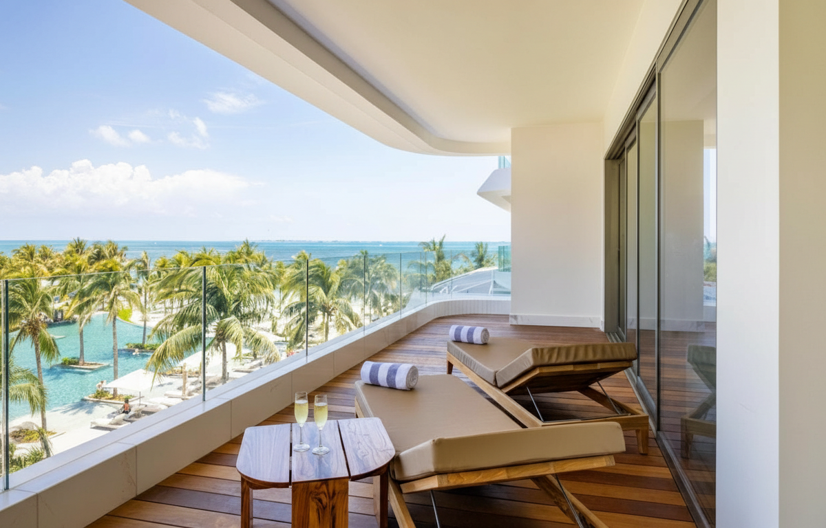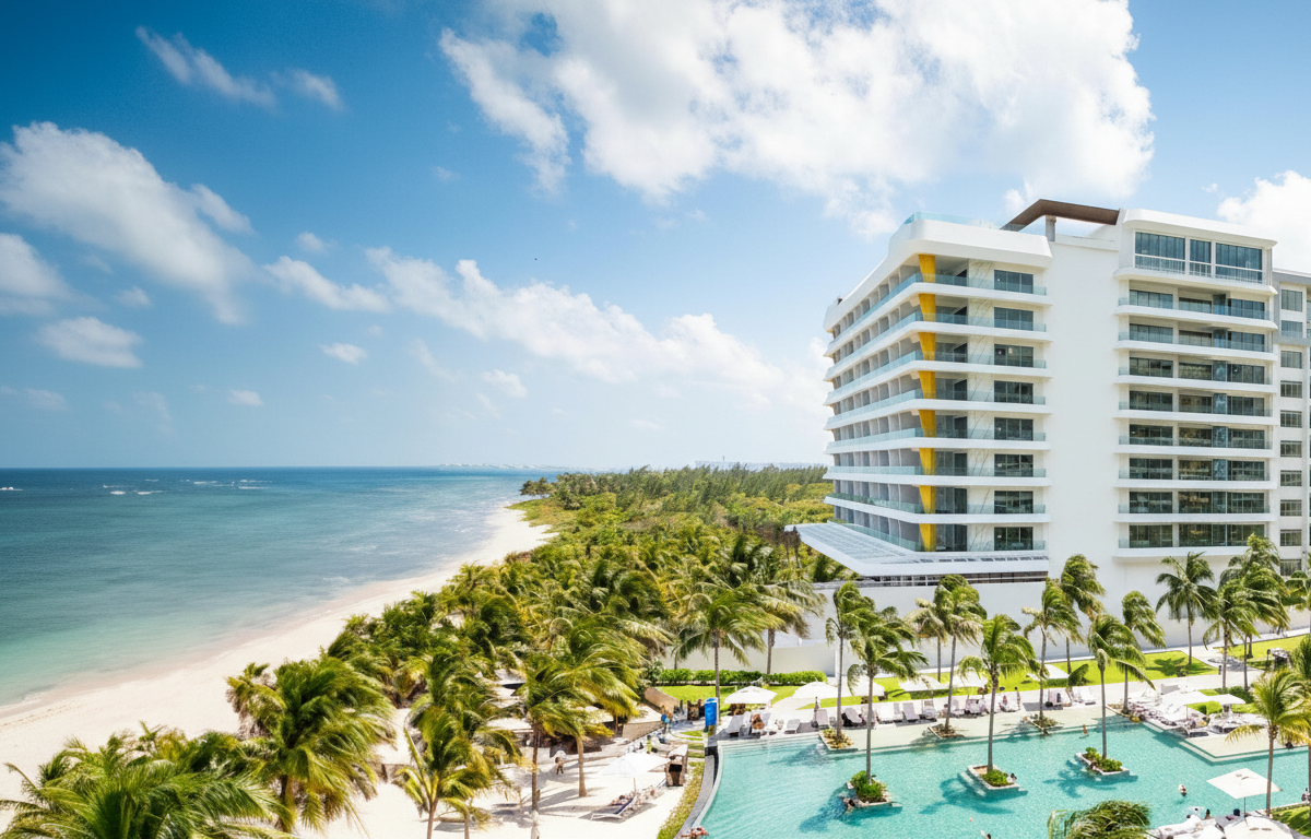 Hotel Mousai Cancún es un resort boutique de lujo solo para adultos, diseñado para viajeros que buscan una experiencia sofisticada y sensorial frente al mar Caribe. Sus elegantes suites frente al mar cuentan con terrazas privadas y jacuzzi, tecnología de última generación y un diseño contemporáneo que prioriza el confort y la privacidad. El hotel ofrece una propuesta gastronómica de alto nivel con restaurantes de autor y bares en rooftop con vistas panorámicas al océano. Los huéspedes disfrutan de piscinas infinity, acceso a playa, experiencias wellness en Spa Imagine y servicio todo incluido premium. Ideal para parejas, lunas de miel y escapadas románticas que buscan exclusividad, lujo moderno y tranquilidad absoluta.