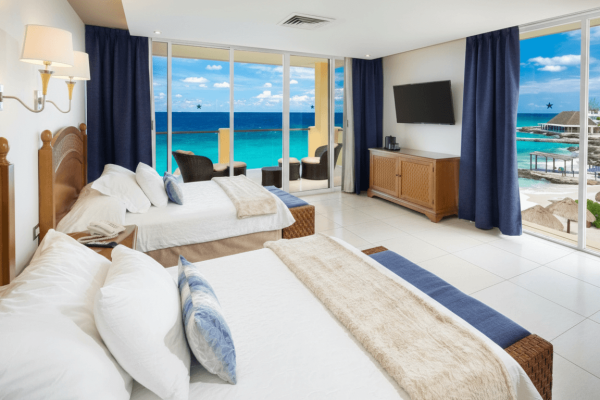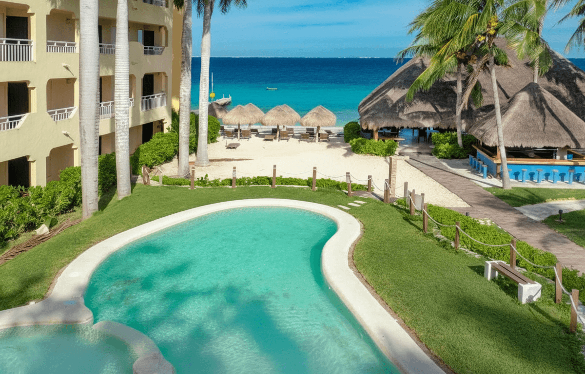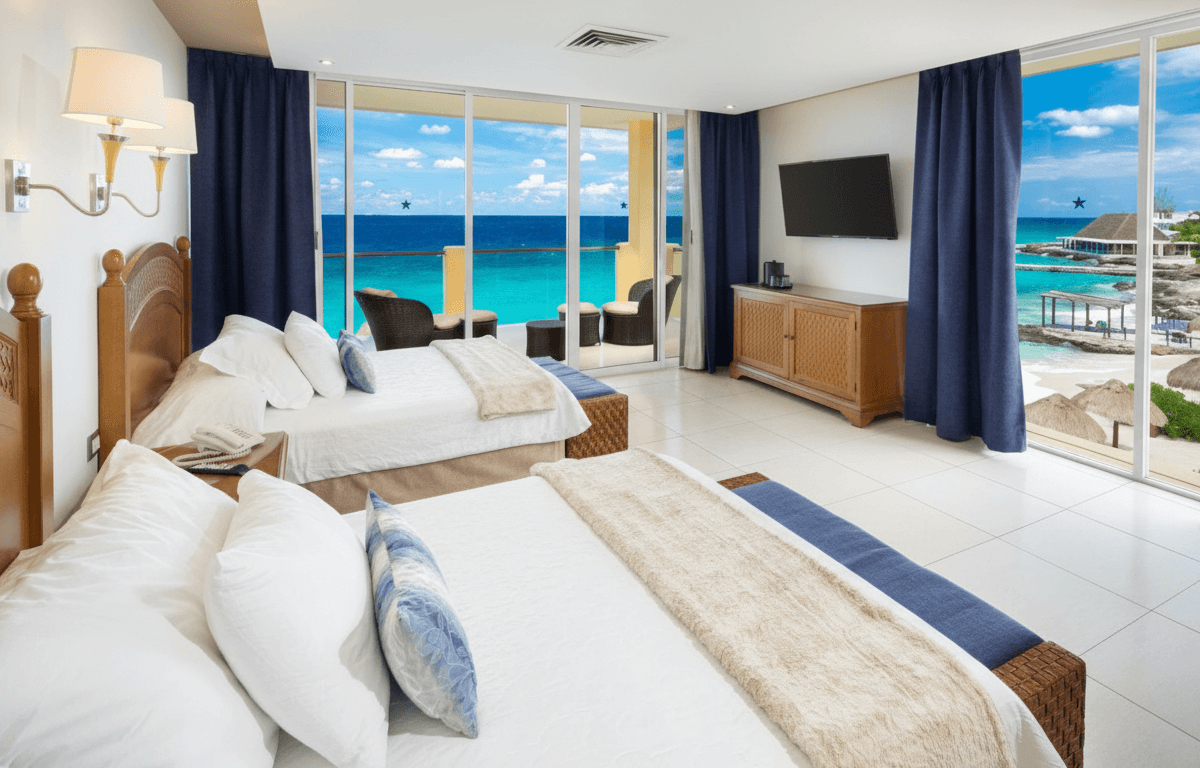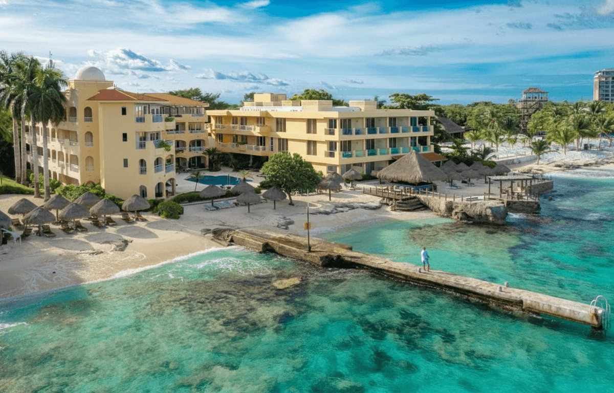 Hotel de playa con ubicación frente al mar Caribe y vistas espectaculares al atardecer; ofrece desayuno buffet incluido, habitaciones con vista al mar, actividades acuáticas como snorkel y buceo, y un ambiente adecuado tanto para familias como parejas.