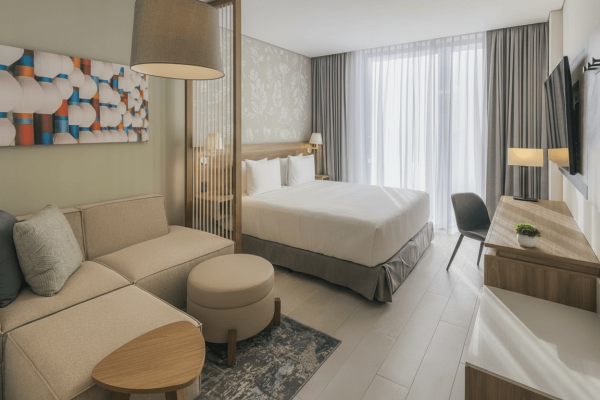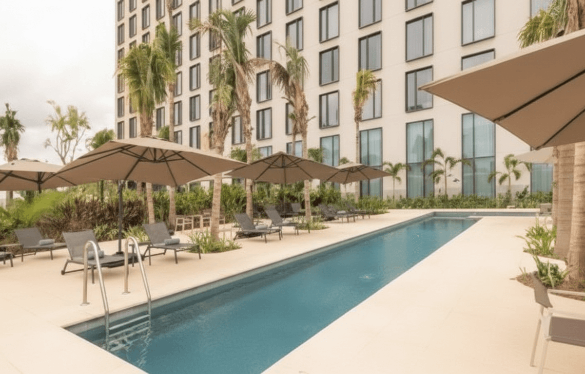 Hotel moderno con habitaciones amplias y ambiente relajado, ideal para quienes desean comodidad, diseño contemporáneo y cercanía al aeropuerto.