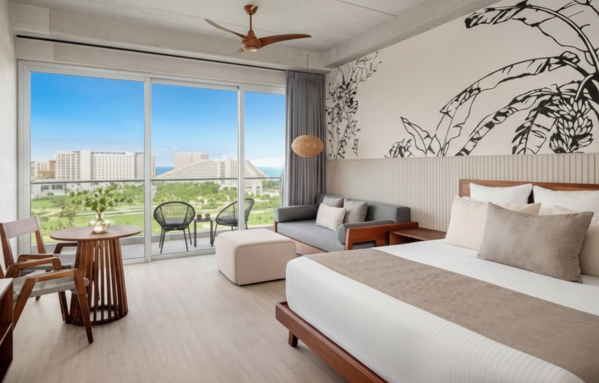 Hyatt Vivid Grand Island Cancún es un resort todo incluido solo para adultos que combina un estilo moderno, relajado y social. Su concepto está pensado para viajeros que buscan un ambiente más casual pero con todas las comodidades de un resort de lujo. Ofrece restaurantes de especialidad, bares, entretenimiento nocturno y un beach club exclusivo al que se accede con transporte incluido. Es ideal para parejas jóvenes, amigos o viajeros que desean una experiencia dinámica, con diseño contemporáneo, buena gastronomía y un ambiente divertido sin perder el confort.