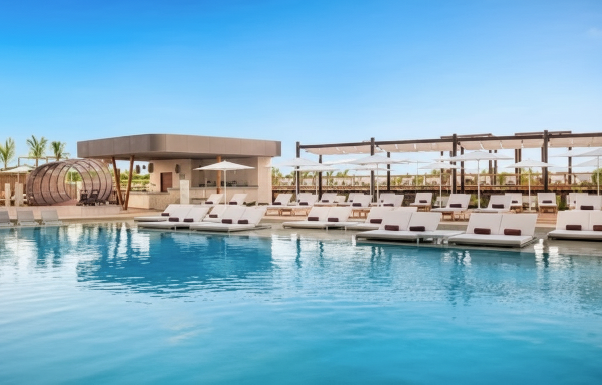 Piscinas, bares, restaurantes, beach club, gimnasio
