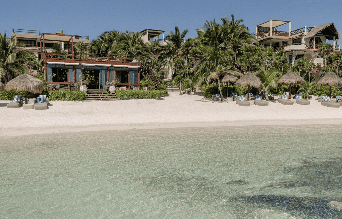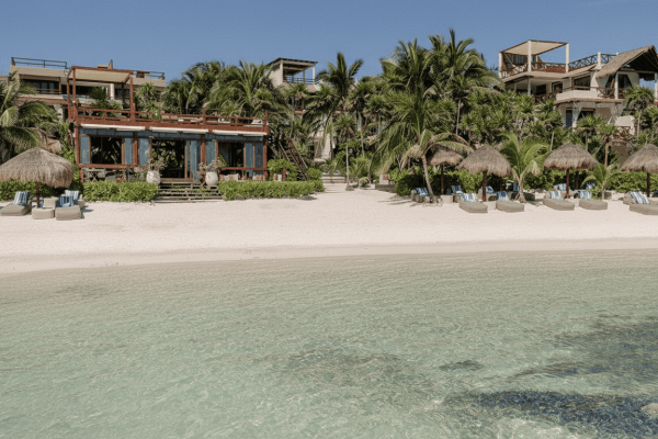 Jashita Hotel Boutique es un refugio romántico situado en una de las bahías más tranquilas de Tulum. Con pocas suites amplias y elegantes, el hotel mantiene un ambiente exclusivo y relajado. Sus terrazas frente al mar, piscina infinity y restaurante de cocina mediterránea crean una experiencia íntima ideal para parejas. Es muy popular para escapadas románticas y lunas de miel gracias a su privacidad y servicio personalizado.