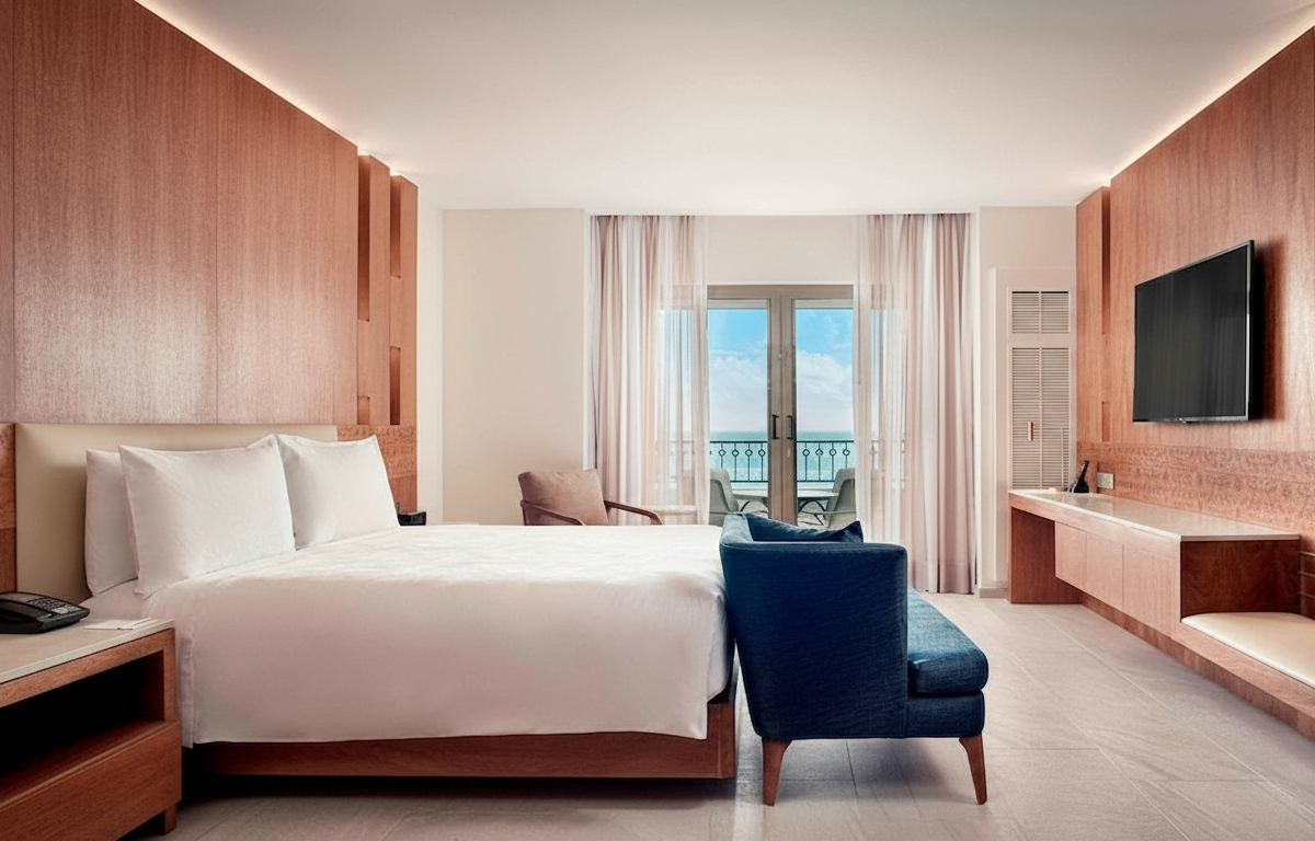 Este majestuoso hotel cuenta con habitaciones y suites refinadas, todas diseñadas con una estética contemporánea y toques de elegancia atemporal. Se ubica en el kilómetro 14.5 de la Zona Hotelera, una posición privilegiada que ofrece vistas panorámicas al mar de color turquesa. Su diseño arquitectónico maximiza la luz natural y la conexión con el entorno marino, mientras que su infraestructura está preparada tanto para el viajero de placer que busca un spa de clase mundial como para familias que desean un entorno seguro y lujoso. Es reconocido por su "Club 91", un nivel de servicio exclusivo que eleva aún más la experiencia de hospitalidad.