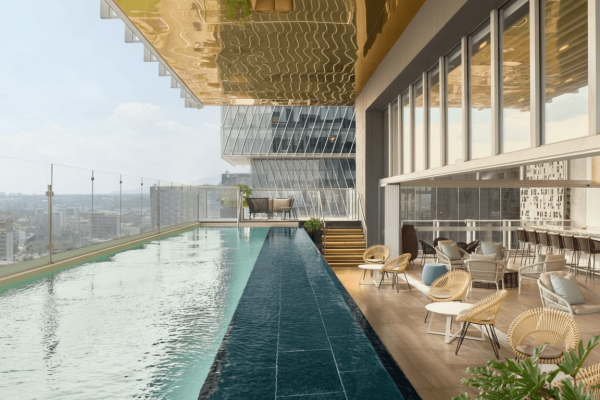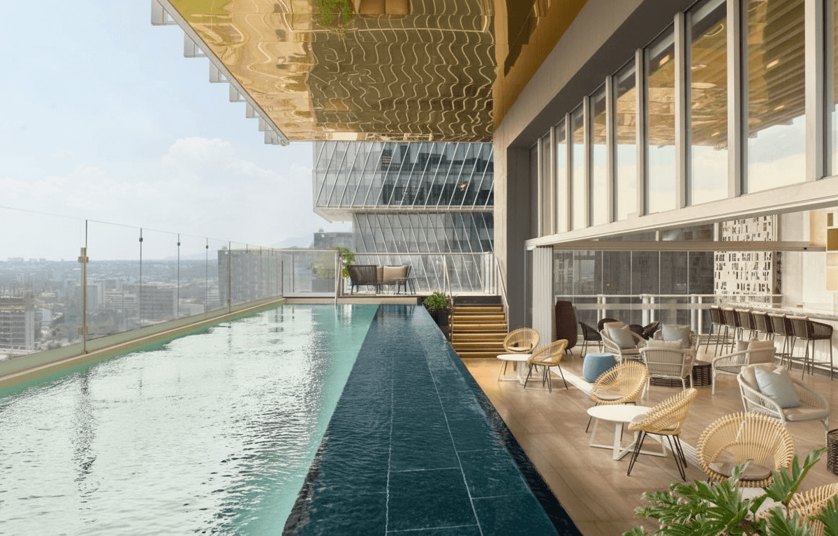 Piscina panorámica, restaurante de alta cocina, gimnasio, bar de coctelería.