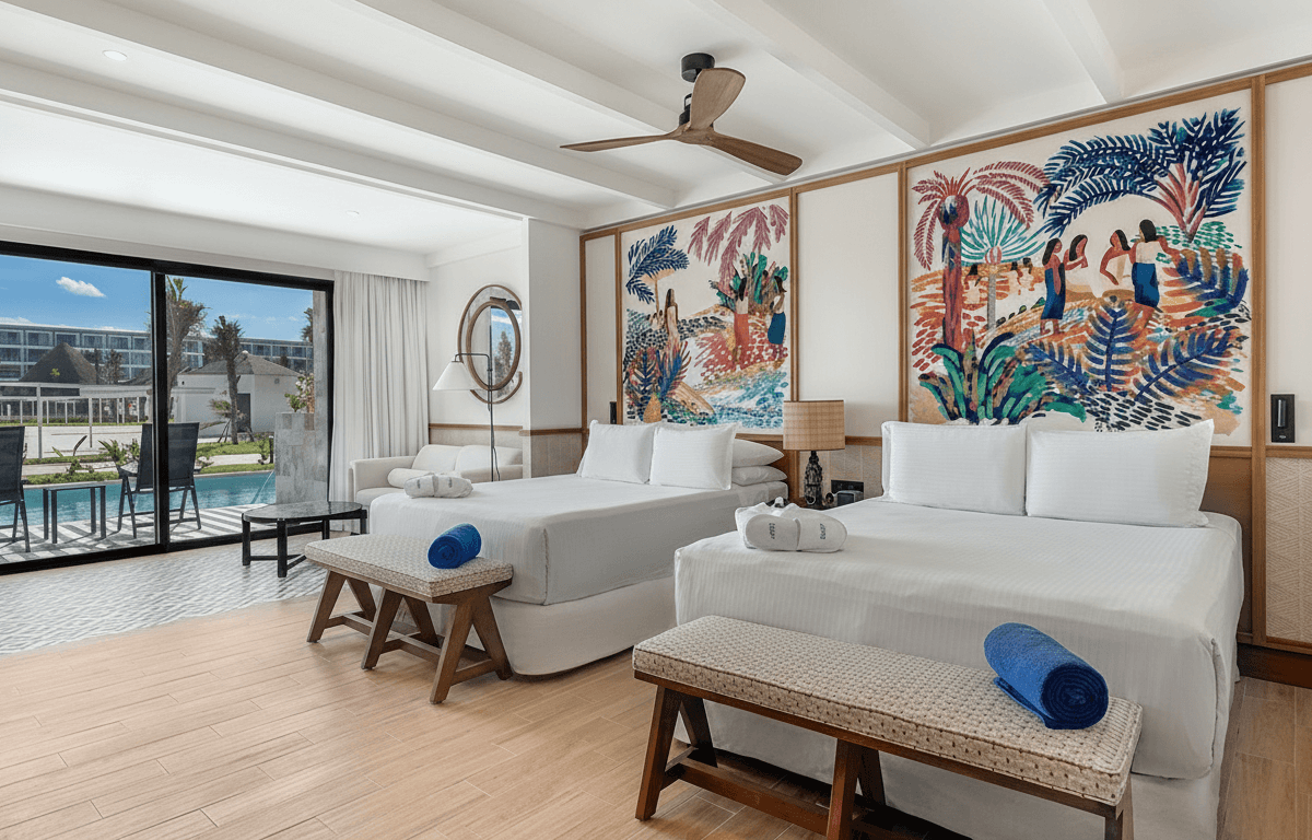 Resort moderno inspirado en el océano con acceso directo a playa virgen. Ofrece amplias zonas de piscina con actividades, gastronomía internacional, spa y servicios premium. Ideal para familias, parejas o grupos de amigos que buscan relax y diversión en un entorno natural.