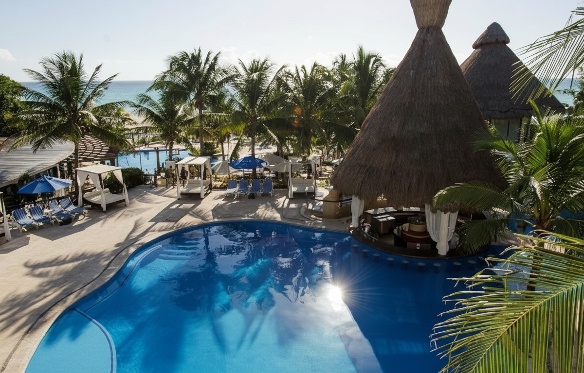 Resort rodeado de jardines tropicales en una de las playas más tranquilas de Playacar.
