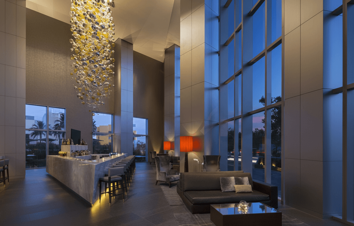 Frente a la Expo, es famoso por sus camas "Heavenly Bed". Si tu prioridad es dormir como en las nubes y comer saludable, este es tu lugar. Se siente un ambiente de mucha calma a pesar de estar en una zona muy transitada.