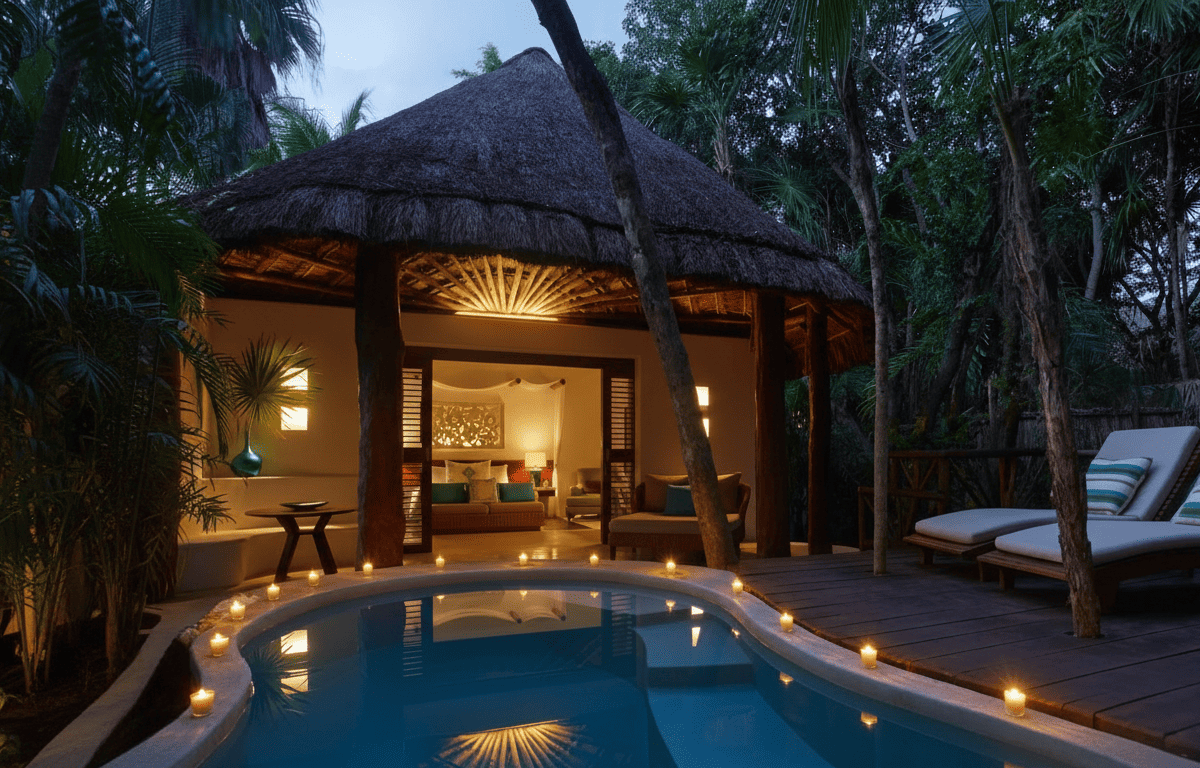 Resort boutique de villas privadas inmerso en la selva tropical frente al Caribe, reconocido por su privacidad, servicio personalizado y experiencias wellness inspiradas en la cultura maya.