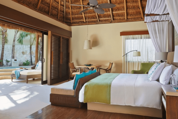 Viceroy Riviera Maya es un exclusivo resort boutique ubicado en la selva tropical a pocos minutos de Playa del Carmen. Con solo alrededor de 40 villas privadas, cada una con piscina de inmersión, terraza y ducha exterior, el hotel ofrece una experiencia íntima de lujo absoluto. Su propuesta combina gastronomía refinada frente al mar, tratamientos de spa inspirados en tradiciones mayas y experiencias únicas como ceremonias de temazcal o cenas románticas en la playa. Es ideal para parejas que buscan privacidad, romance y contacto con la naturaleza en un entorno sofisticado.