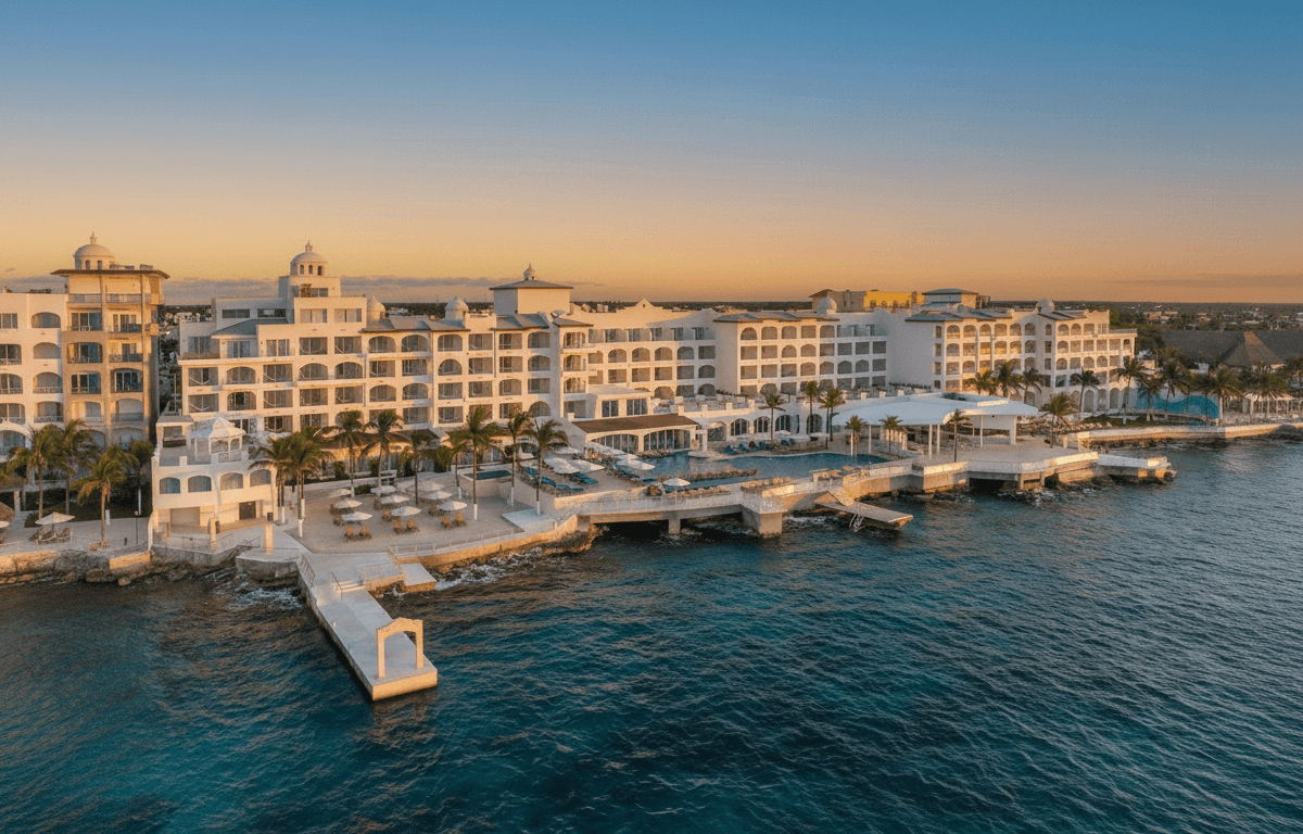 Resort elegante con experiencia todo incluido, excelente atención, amplias piscinas y gastronomía variada frente al mar en el centro de Cozumel.