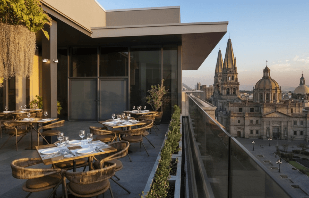 Terraza panorámica, gimnasio, restaurante, centro de negocios.