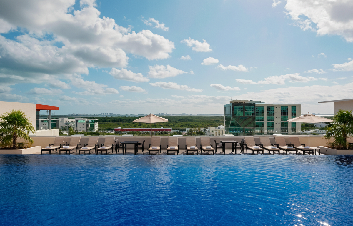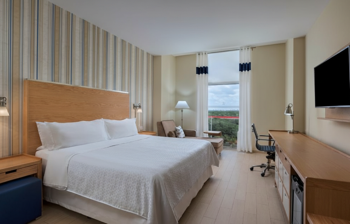 Four Points by Sheraton Cancun Centro ofrece la confiabilidad de una marca global con servicios completos, ambientes confortables y una ubicación estratégica para negocios, eventos o turismo urbano. Ideal para quienes desean servicios más sólidos como gimnasio, piscina y bar, junto con proximidad a zonas culturales y comerciales del centro.