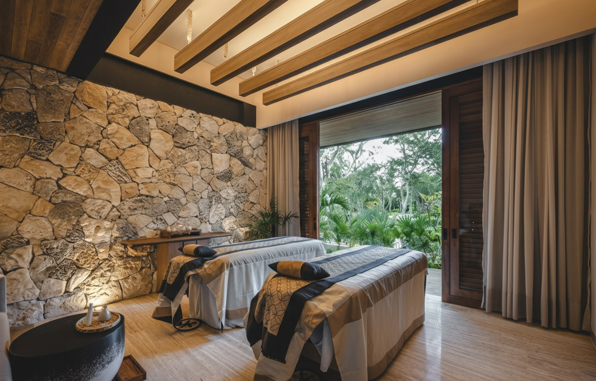 Spa Angsana, piscina olímpica, restaurante Casa de Piedra, suites con piscina privada.