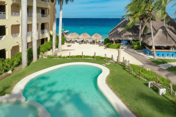 Hotel de playa con ubicación frente al mar Caribe y vistas espectaculares al atardecer; ofrece desayuno buffet incluido, habitaciones con vista al mar, actividades acuáticas como snorkel y buceo, y un ambiente adecuado tanto para familias como parejas.