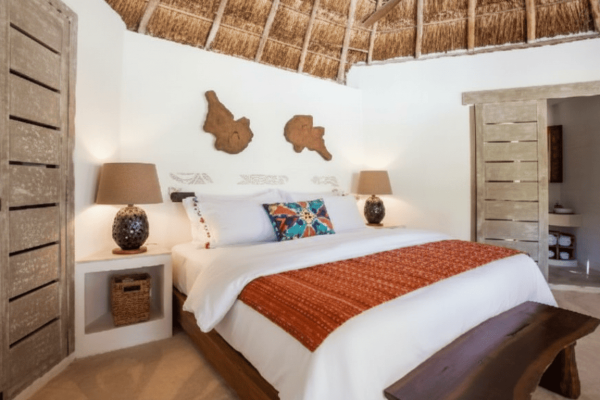 Resort caribeño con estilo bohemio rodeado de jardines tropicales y acceso directo a una hermosa playa cerca de Playa del Carmen.
