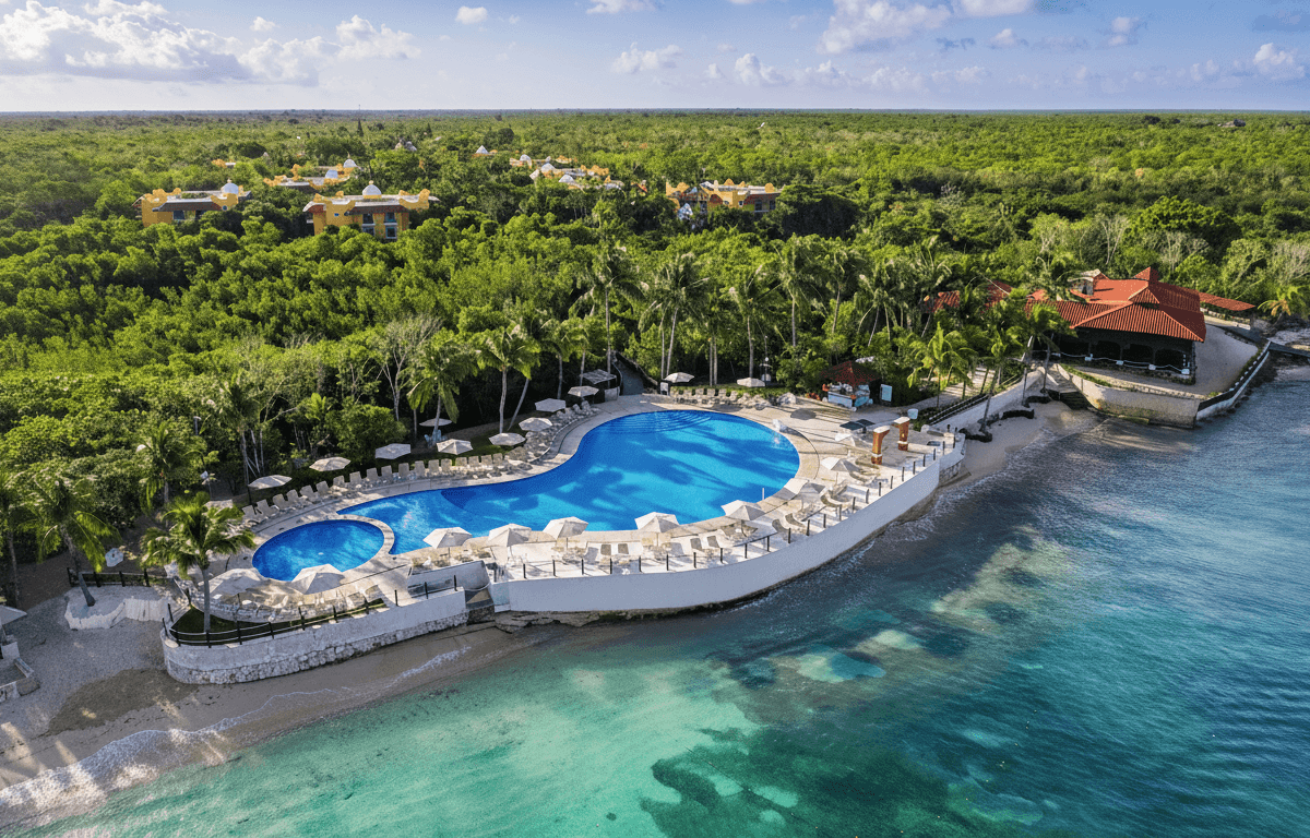 Inspirado en una hacienda mexicana, este resort combina arquitectura tradicional con el azul intenso del Caribe. Ideal para quienes buscan un ambiente activo, rodeado de naturaleza y mar.