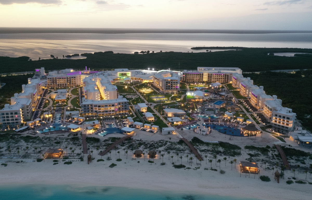Resort todo incluido familiar con energía temática y entretenimiento variado.