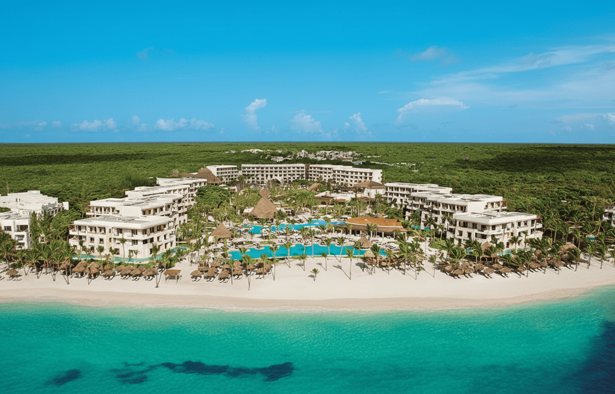 Secrets Akumal destaca por su ubicación privilegiada frente a la bahía de Akumal, famosa por el avistamiento de tortugas marinas. Es un todo incluido solo adultos ideal para lunas de miel y escapadas románticas. Ofrece gastronomía variada, suites elegantes y ambiente relajado. Muy vendible en mercado honeymoon y parejas que buscan lujo sin llegar al ultra lujo de plan europeo.