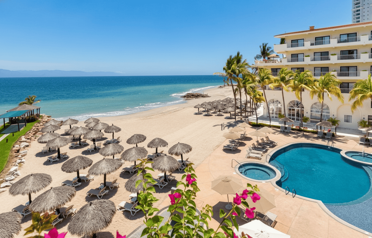 Villa del Palmar Beach Resort & Spa Puerto Vallarta es un hotel versátil que combina el concepto de suites amplias con opción todo incluido. Ubicado en Zona Hotelera, es ideal para familias que buscan comodidad adicional, ya que muchas habitaciones cuentan con cocina y áreas de estar. Su ambiente es relajado y familiar, con buena ubicación y servicios completos.